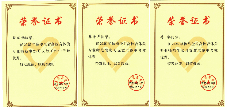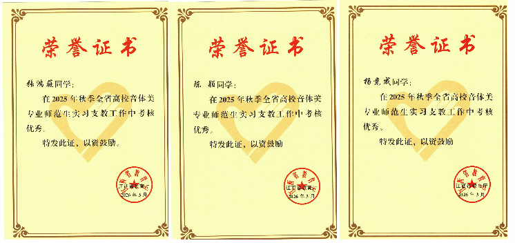 近日,2025年秋季全省高校音体美专业师范生实习支教活动评选结果揭晓,我校艺术学院段灿灿、蔡芋芋、鲁琴、张鸿薇,体育学院陈颖、杨竞成六位支教生,凭借扎实的专业素养、务实的工作作风,喜获省级“优秀实习支教生”荣誉称号,用实际行动践行了师范生的使命与担当。