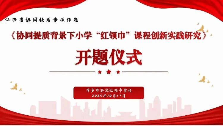 2025年10月17日,协同提质专项课题《协同提质背景下小学“红领巾”课程创新实践研究》开题仪式在安源红领巾学校举行。萍乡学院曾维华教授应邀参会。安源区教研室副主任李晓霞出席会议,会议由课题组核心成员钱蓓莲老师主持,学校课题组全体成员及部分骨干教师参加了会议。